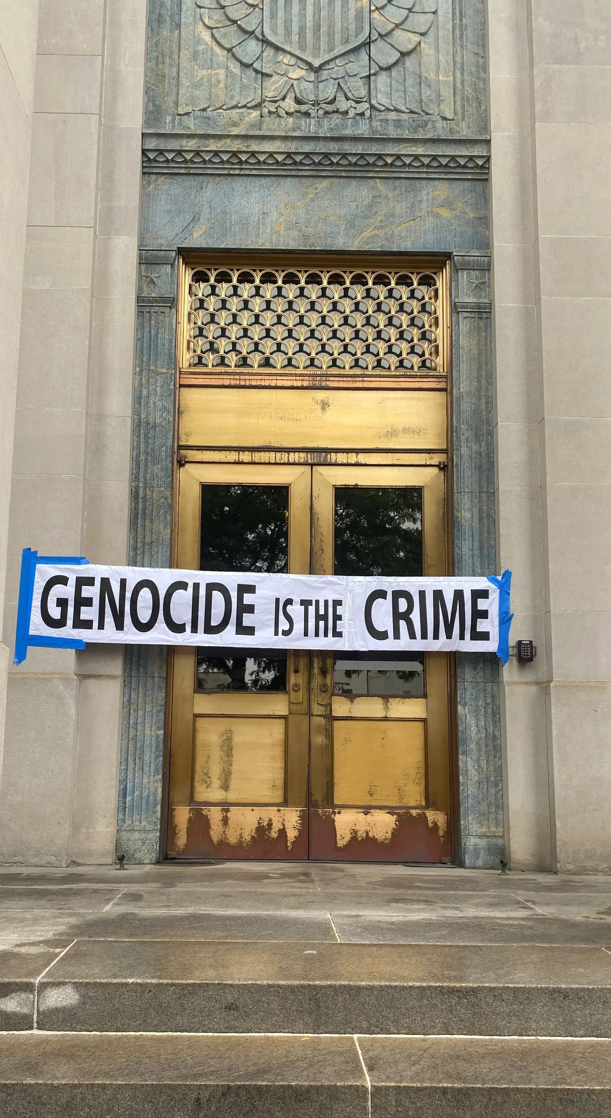 On October 22, members of the ICW and the Downtown Berrigan Collective, as well as, other concerned citizens attempted to meet with our congressperson, Josh Riley, about the ongoing genocide in Gaza. We had written, called, and emailed to no avail. Determined to discuss how to end the US funding of genocide in Gaza with Riley and/or his staff, we went to his Binghamton office (one of four times we have attempted to meet in person with Binghamton staff since August 2025.) After being told by a Riley staff member that someone from the office would speak with the group, we waited. Instead of a welcome to hear our “petition for a redress of grievances”, the police were called to inform us that we had to leave the building. Three members of the group decided to stay since they were told that someone from Riley’s office would come to talk with them. The three, Tom Joyce, Bill Carini, and Dan Burgevin were arrested and charged with trespass. They have pleaded not guilty and plan to go to trial. Below are some of the words we attempted to share with our congressperson